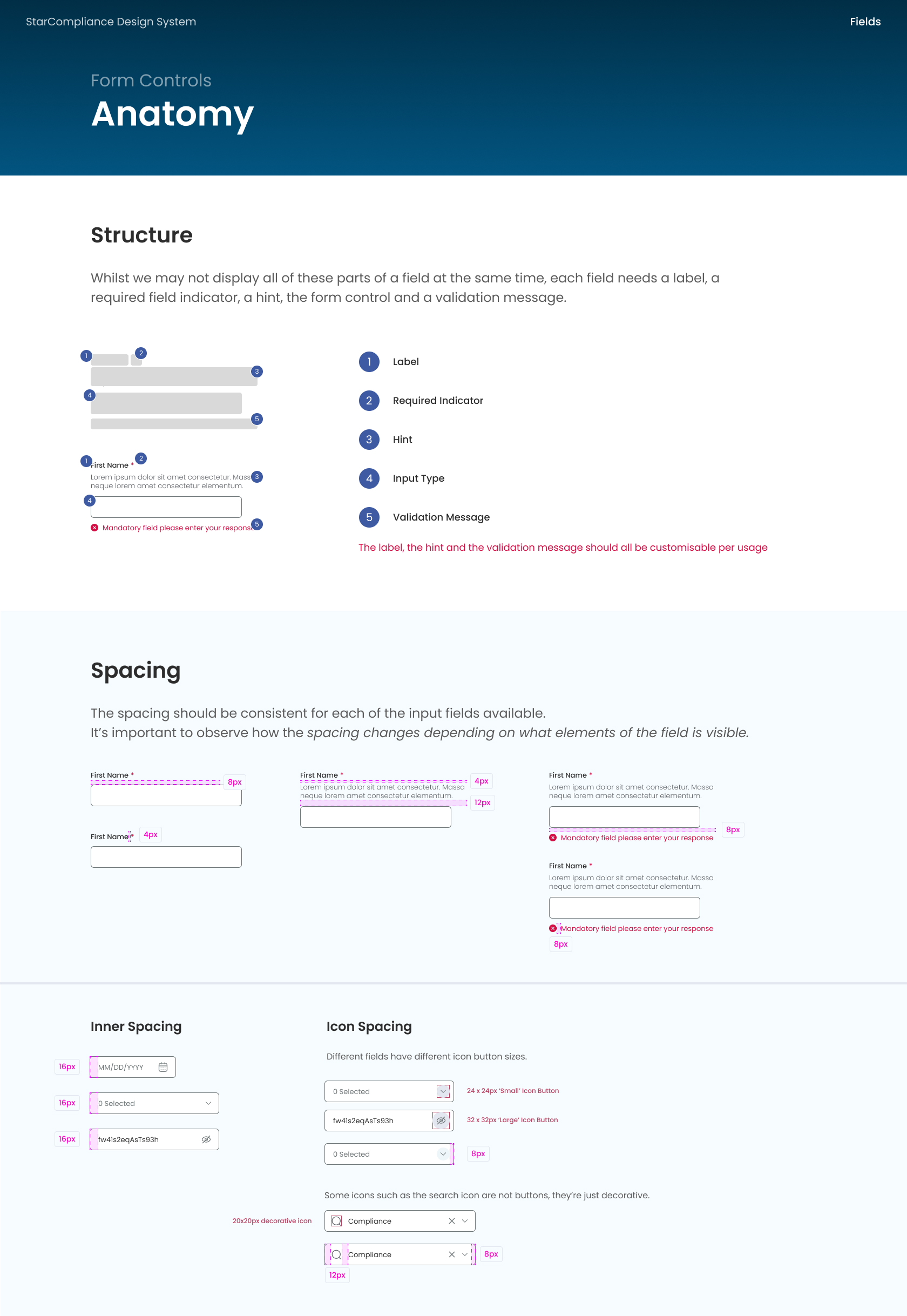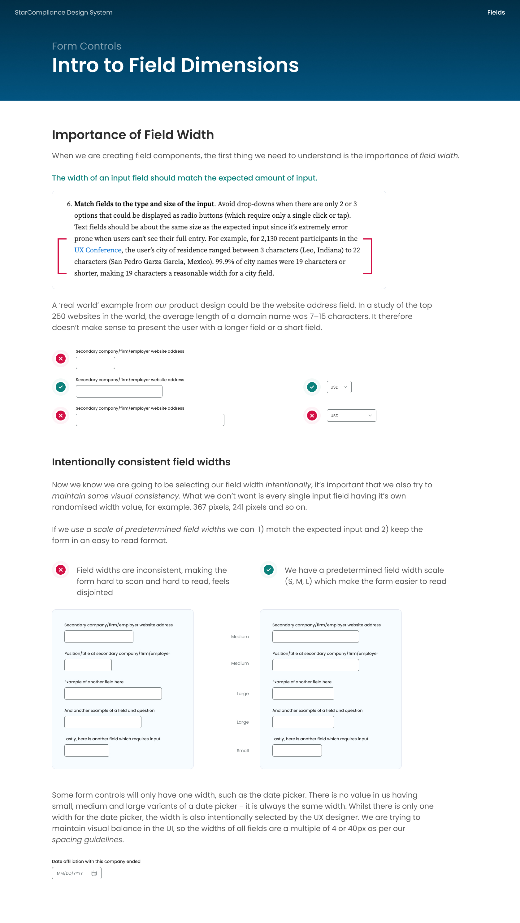 The screenshots below showcase some of the documentation I wrote to support the development and usage of varying design system components. It's important to keep a record of component-related design decisions, and by providing supporting UX theory and reasoning, it helps to get developer and product owner buy-in.