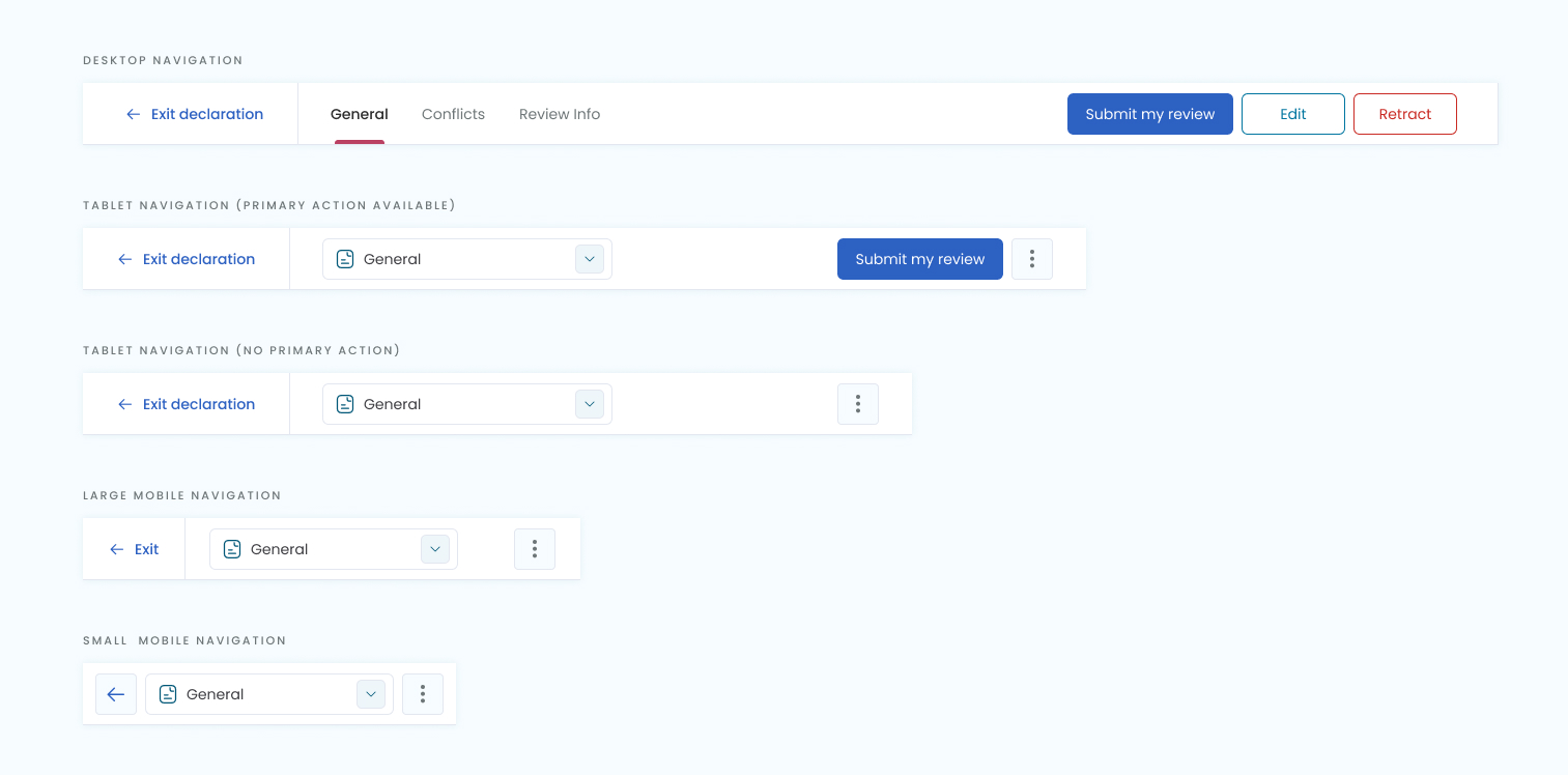 It's important to note that not all components can collapse responsively by default. Therefore, I implemented adaptive design principles in cases where components needed to change or adapt based on specific breakpoints. Adaptive design was particularly applied to larger components such as navigation bars, sidebars, and data grid components.