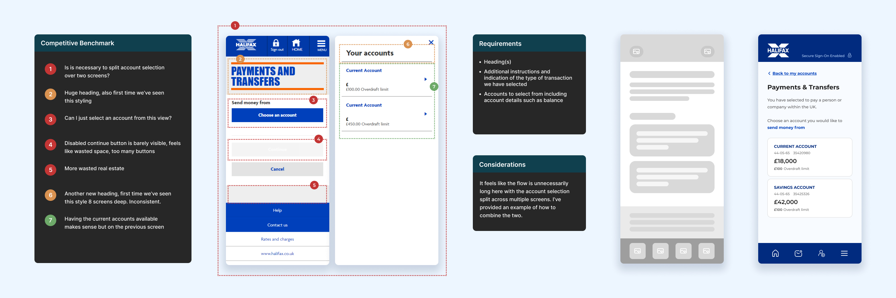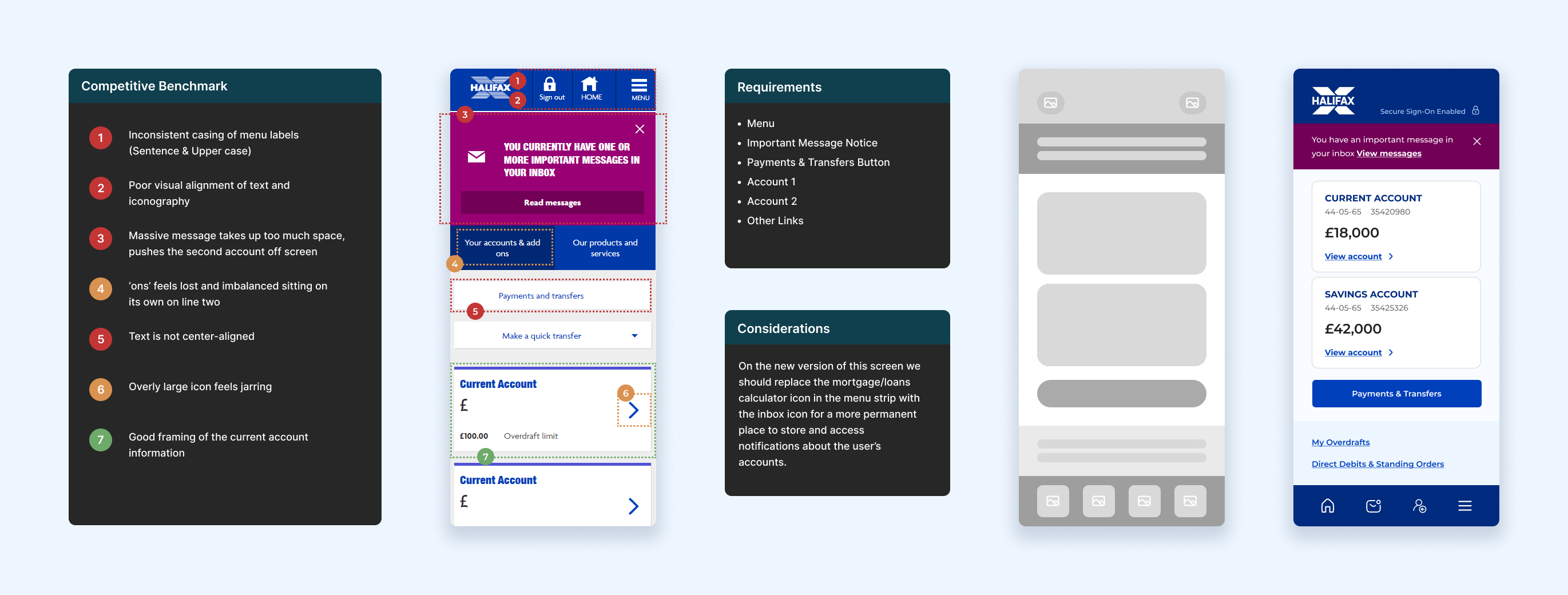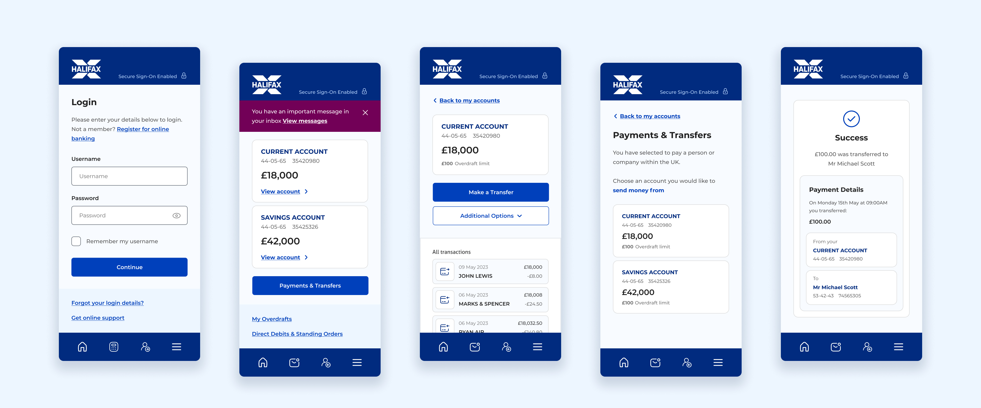 I developed streamlined user journeys and modernised UI patterns for both Halifax and a dedicated Pension Management app, prioritising accessibility and fluid interaction.